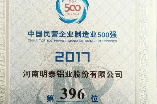 2022年7月明泰鋁業(yè)首次入選《財(cái)富》中國500強(qiáng)